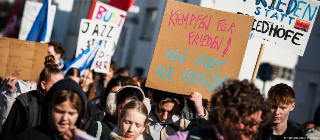 “I don’t think I’ll be dying for my friends, relatives or acquaintances, in the worst-case scenario,” 17-year-old Shmuel Schatz, spokesperson for the School Strike Committee, told DW’s Gasia Ohanes. “Rather, in the end, only for those who are put into the trenches for the interests of large corporations like Rheinmetall, ThyssenKrupp, and others, so they can line their pockets at the expense of war.”