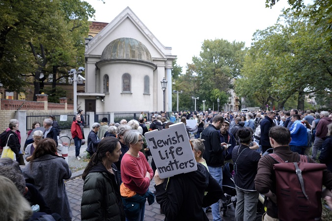 Police say the gunman killed two people Wednesday in the eastern German town of Halle — one directly outside the synagogue, and one at a nearby kebab shop. Police have arrested the suspected gunman.